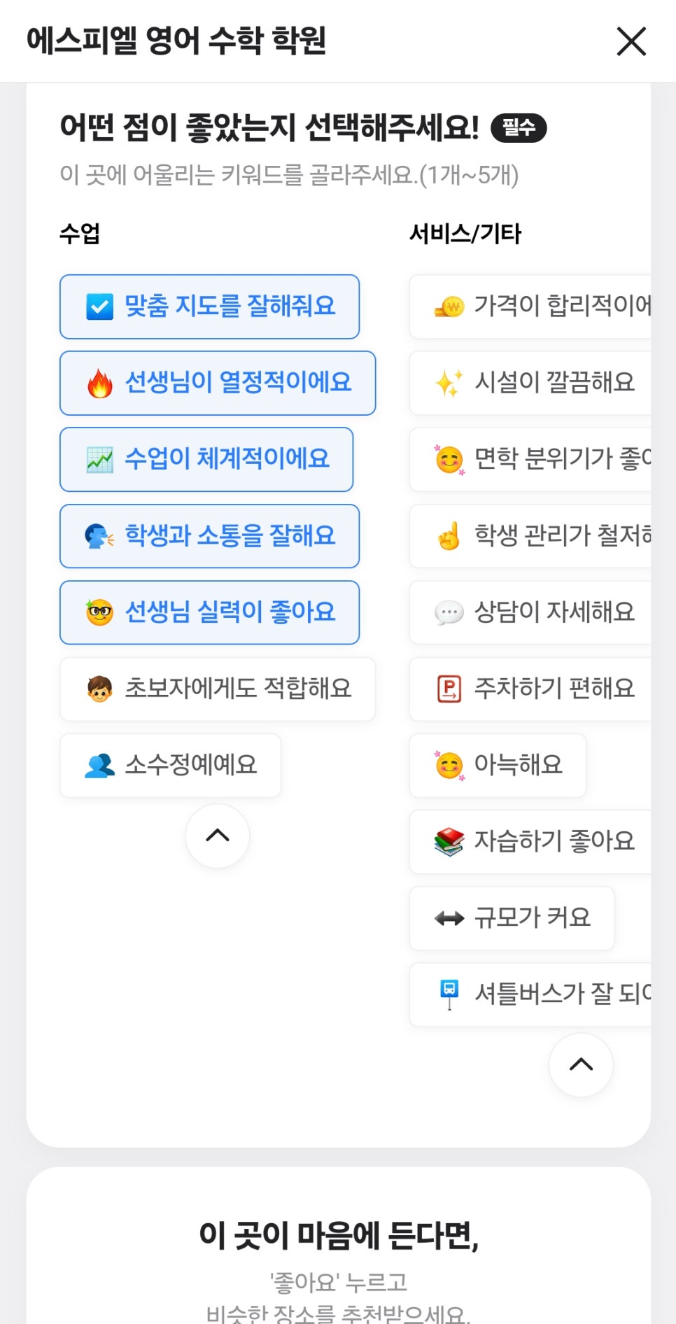 ✔️ 키워드 활용: 수업, 선생님, 분위기, 학원 이름 등으로 구성