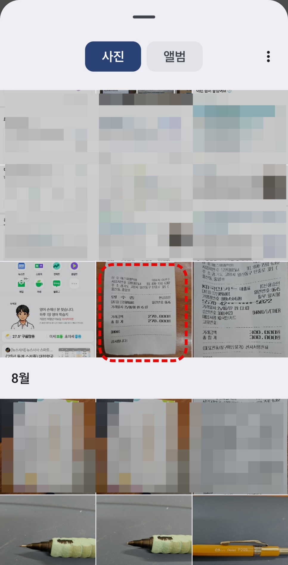 7. 촬영한 영수증 사진 선택