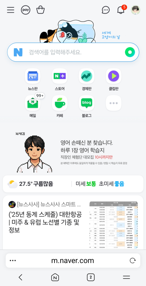2. 휴대폰에서 네이버 접속