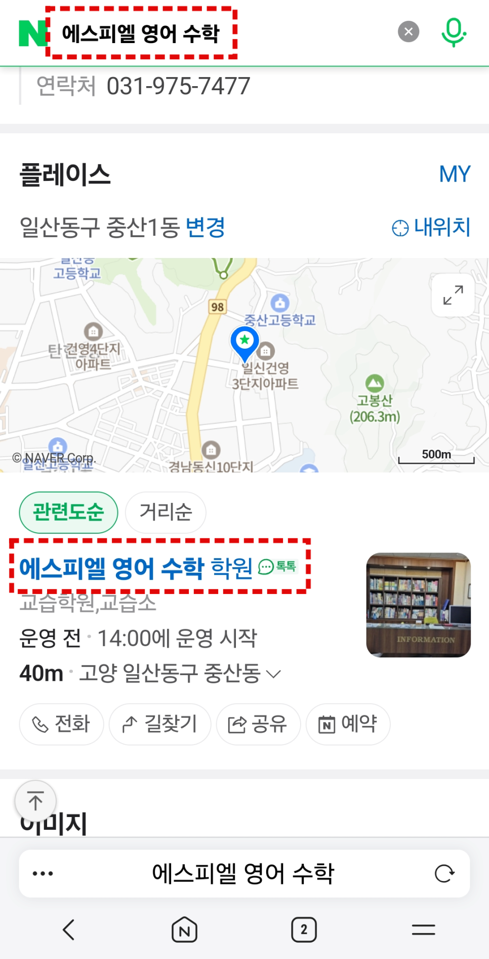 3. 네이버 검색창에 에스피엘 영어 수학 학원 검색 후 하단 플레이스에서 에스피엘 영어 수학 학원 클릭
