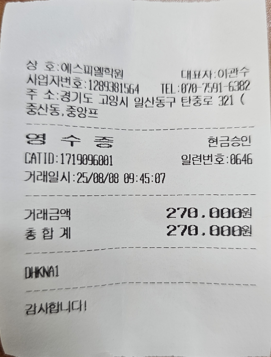 1. 학원 결제 영수증 준비