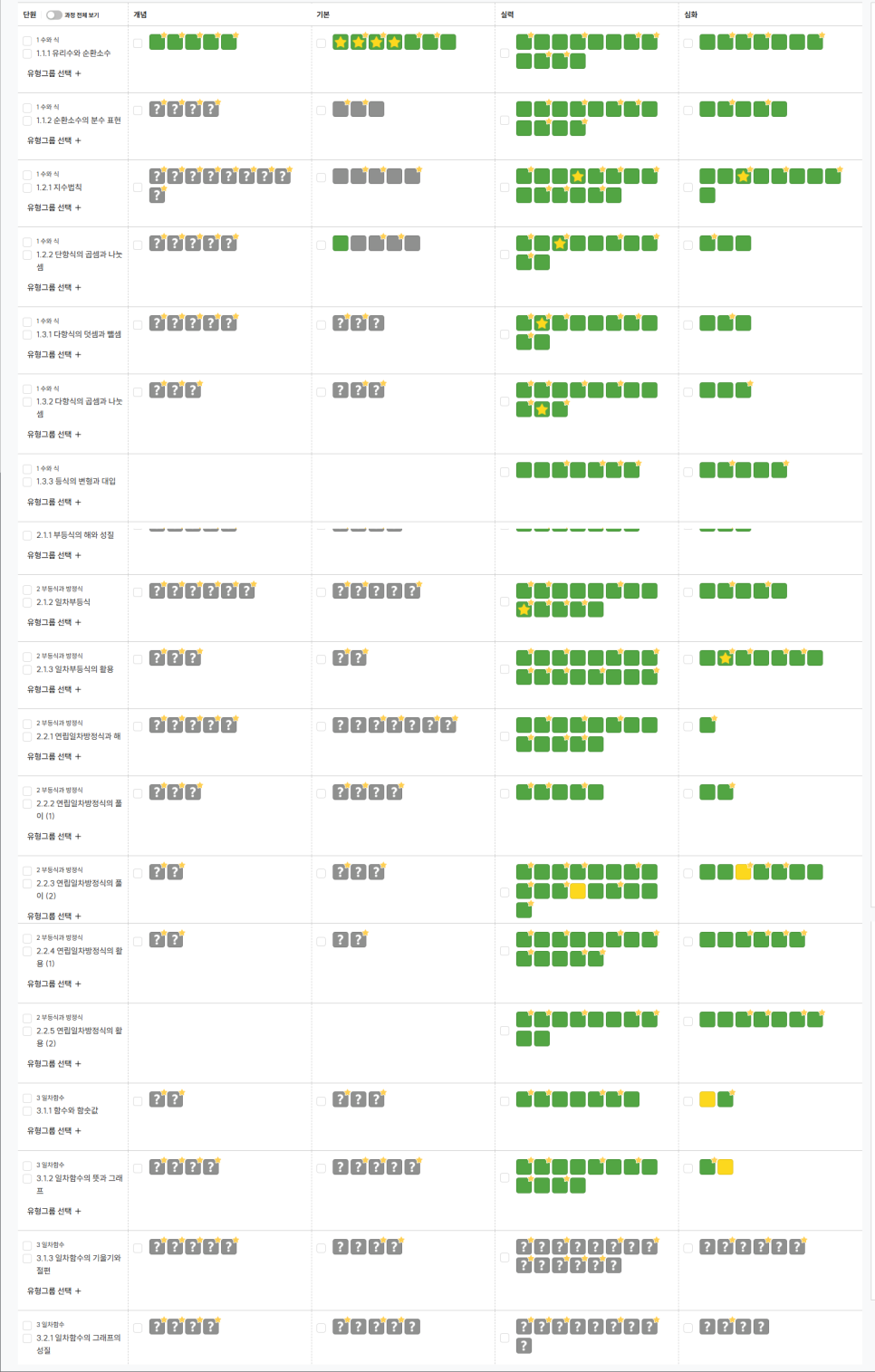 중1-2 전 과정 신호등 올 클리어!
