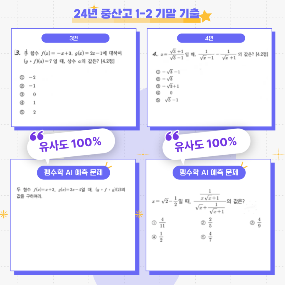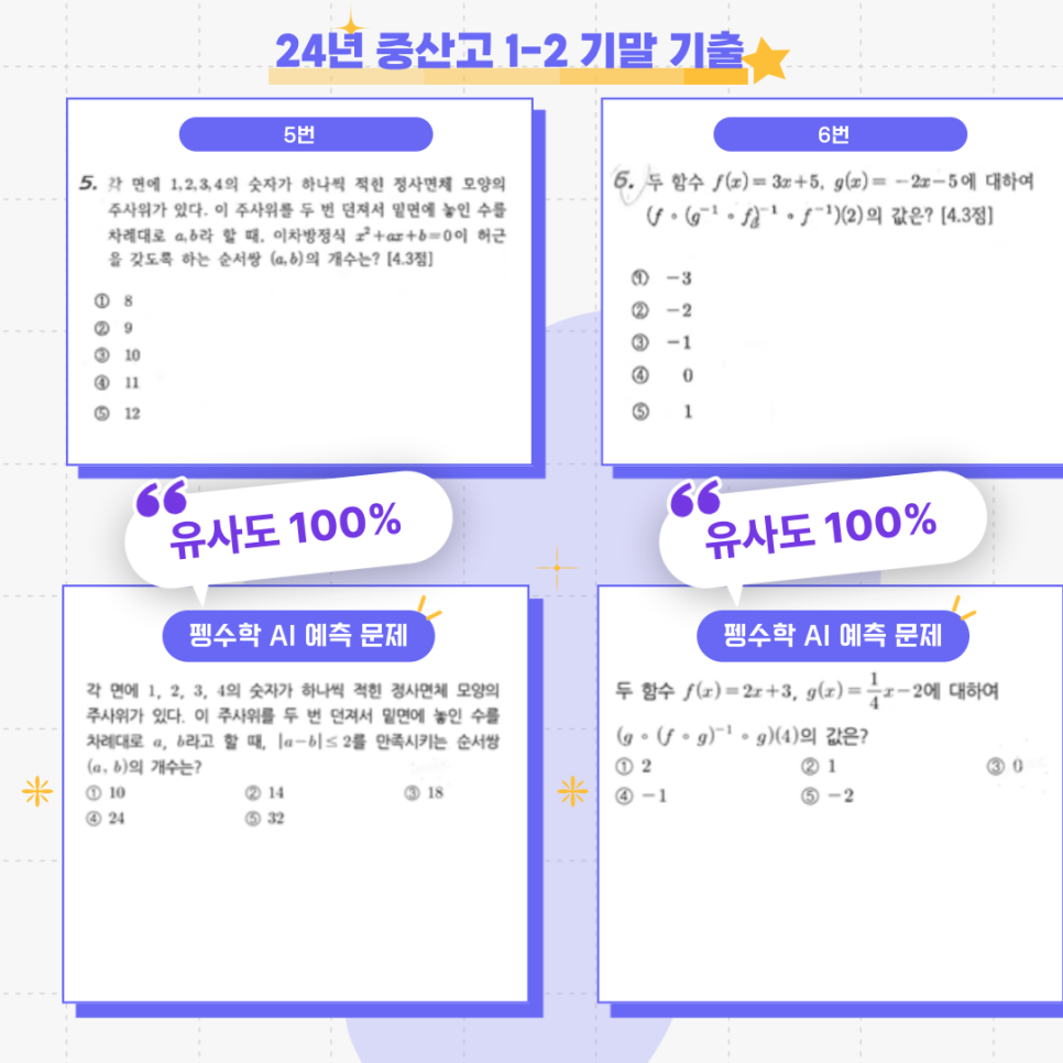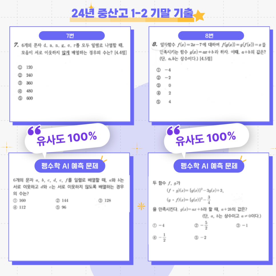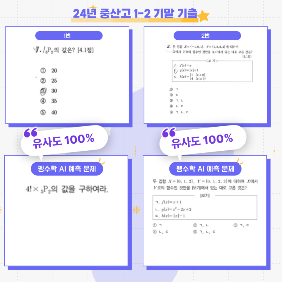 이번 중산고 시험에서도 유사도 100%의 문항들이 다수 출제되며, 그 효과가 다시 한번 입증되었습니다! 🎯