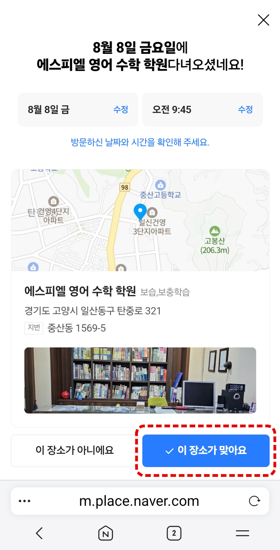 이장소가 맞아요 클릭