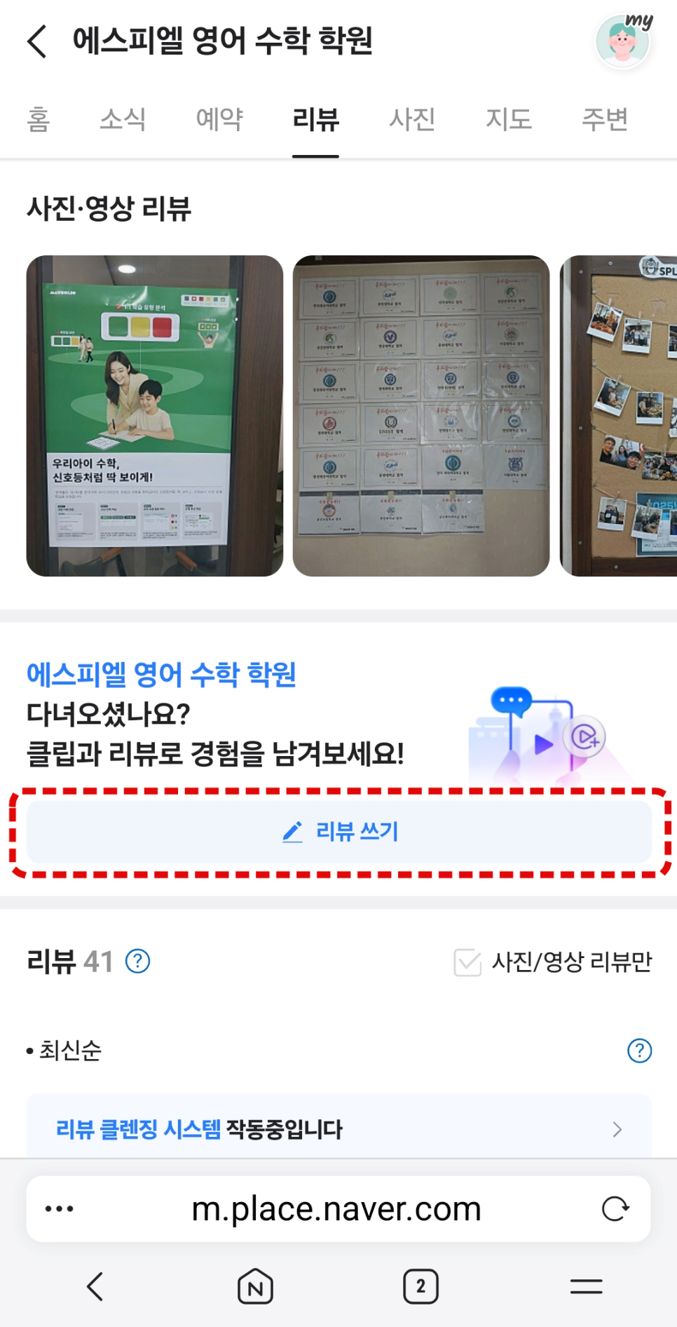 4. 에스피엘 영어 수학학원 확인 후