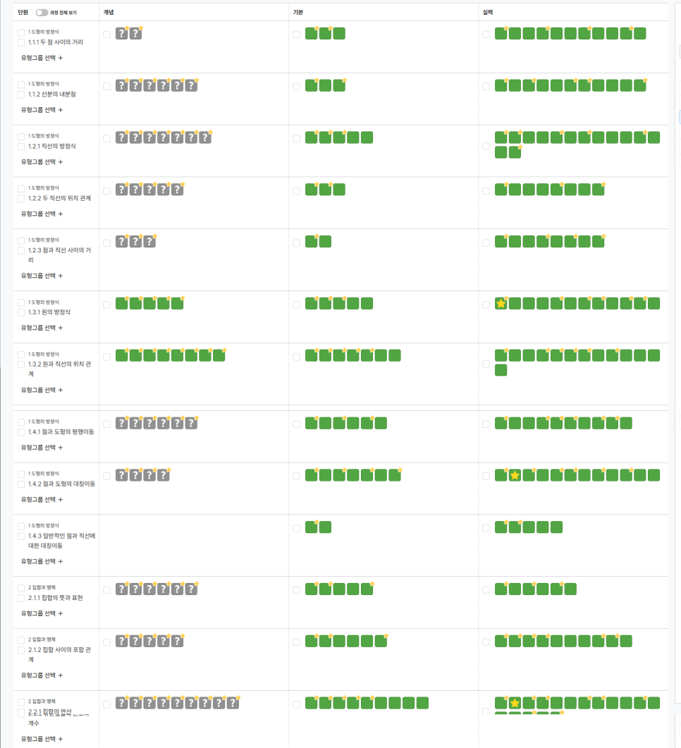 거기다 중2-1 과정 신호등도 거의 마무리!