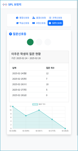 : 학생들은 자신의 질문 활동 상태를 한눈에 확인할 수 있습니다.