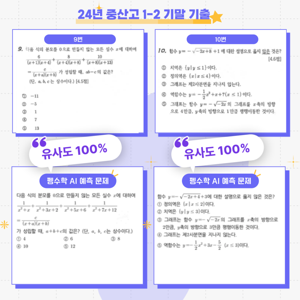 이번 중산고 시험에서도 유사도 100%의 문항들이 다수 출제되며, 그 효과가 다시 한번 입증되었습니다! 🎯